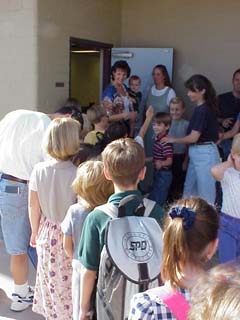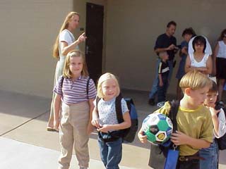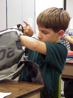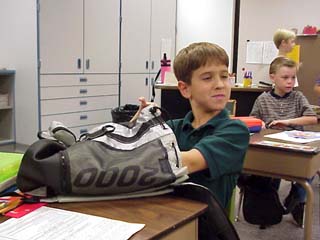Cameron wearing my fathers smirk; new teacher Mrs. Lattie; head counts and lining up; Cambo at his new desk.