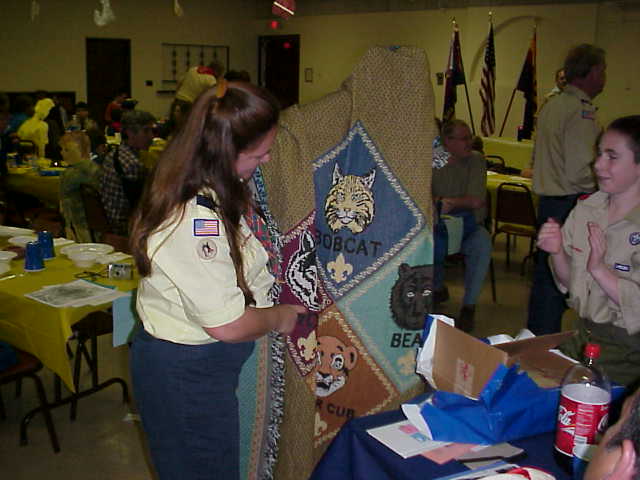 The boys bought Kelly a Cub Scout blanket