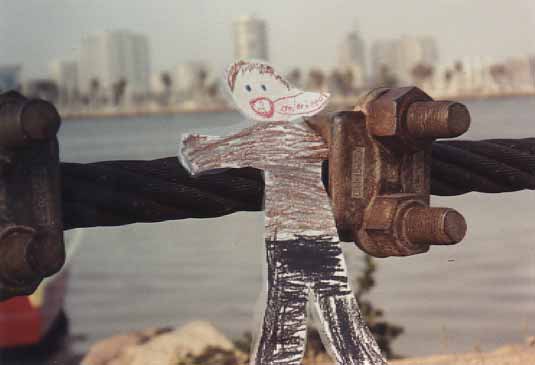 Almost immediately bad guys capture Flat Cameron and tie him to a cable.