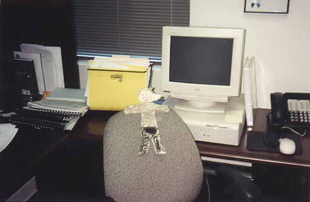 He makes two more trips to Los Angeles and finds a secret map to the pumpkin patch in a computer. The bad guys catch him at work and tape him to a chair.