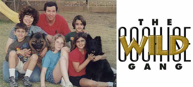 Ferae Bestiae (wild animals), 11/14/99 (counter-clockwise from the top): Greg Swann, Cathleen Collins, Gregs son Cameron (who is camera-hostile), Charlie (Akita/Chow), Gregs daughter Meredith, Cathys niece Madalaine, Shyly (Labrador/Chow), and our dear friend Jasmine (also camera-hostile). Absent are: four cats, Shale, Onyx, Chess and Obsidian; Gwendolyn the Gerbil; and Fortinbras, Prince of Norway, our Cockatiel. |