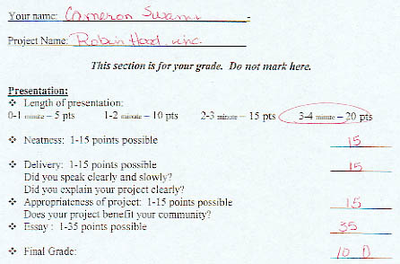 Unpacking the language of Language class... I have written a lot about education in the past, and I will write a good deal more in the future; it's in my retirement plan. In particular, I have railed on and on about indoctrination masked as education. This is me from email from a long time ago: My primary objection to this is that it comes down to indoctrinating children on topics about which they can have no reasoned opinion. Anything a child says about slavery or liberty or theology or free will or any other discipline of adult belief amounts to nothing more than the undigested regurgitation of what some adult has force-fed that child. The natural concerns of childhood are play. The appropriate work of childhood is education, and I think education should be limited only to matters which are conceded to be true without controversy by all competent observers. I am opposed to inculcating children in anything that is, at bottom, a belief accepted on faith.This now becomes a problem for me. I have always been very careful to insulate my son Cameron, just turned twelve a month ago, from my beliefs. He knows what they are, if only because he hears me talking to my wife Cathy and other people--and Cathy and other people to me. And, of course, I have a web presence, and he has sampled from that, too. Plus which, he's more than typically serious about what we might call 'adult concerns'. And on top of that, he reads very serious adult-concerned books. He's read the Harry Potter books a zillion times, just like every other bright kid his age, but he's read Atlas Shrugged, as well. Twice. And to quote a line from that lofty tome: "It's not my fault!" Cameron is a nascent libertarian, but I didn't indoctrinate him, I swear! Rather more the opposite: I've been the perfect Jesuit, taking the contrary on any stand he takes, to test his footing. I know the arguments that undergird the other side, and I know the elisions and hand-waving to be found in the arguments on this side of the debate, too. I can't help it that Cameron knows what I think, but I can make damn sure that he knows what he thinks. This is an issue right now because of an assignment he has in his Language class. (I have no idea what Language, as distinct from language, might be; presumably it's an excuse for not teaching English.) The assignment, the momentous "6th Grade Fall Project," is due today. This is the challenge the sixth graders (note that in language, as distinct from Language, positive cardinal and ordinal numbers below 13 are spelled out) must surmount: Assignment: You are designing a building or complex that would benefit your community in some way. You will present your building or complex to the class as if they are the City Council. You are attempting to get the "City Council" to approve your proposal.There is no limit to what I can find to hate in this assignment. This is everything that is wrong with American education--and, mind you, my son goes to the best school we could find for him. And yet to his teacher he is nothing but a sacrificial animal, doomed to a life of benefit to the community and compelled to ask for permission to live from the "City Council" (scare quotes appropriately sic). What a model or a blueprint or a PowerPoint presentation have to do with Language, as distinct from language, I do not know. To make matters even worse, one of the factors to be considered in grading this abortion is "appropriateness of project". Well. Cameron and I had some fun with this. I do not indoctrinate my son, but he is a libertarian and I am a libertarian and we are each lucky enough to have someone near at hand to talk to to, to joke with, to mutter to in mock conspiracy. When the assignment came home, we made jokes about 'benefitting' the community with crematoria for government workers or re-education centers for teachers, the kinds of things "community benefitters" always do when they accumulate enough power. But then Cameron got to work in earnest, trying with all his mind to take this absurd assignment seriously. He came up with the idea of a for-profit science lab, but he couldn't work up any enthusiasm for it. Meanwhile, I was using the assignment as an object lesson in encapsulated pre-suppositions. I doubt very much that the teacher was being actively tendentious; she is simply enmired in the Socialist swamp we're all stuck in, to one degree or another. What I wanted to drive home to Cameron was the notion that one must unpack everything--ideas you loathe, but most especially ideas you love--to discover the hidden premises that can lead you, unwittingly or with a grand and knowing passion, into error. He ended up with the speech presented below. I don't know if he based this on Atlas Shrugged's Ragnar Danneskjold or not, but I love it either way. Robin Hood, Incorporated, takes from the unproductive and gives to the profit-making(I really, really want to have a fight about "appropriateness" (a euphemism in Language for the English word "propriety"--which is entirely too clear in meaning, hence the euphemism).) Cameron made a very impressive PowerPoint presentation to go along with this speech. I've made a web version of it available, but you should view it only after ruminating on these two caveats: First, the New York Times argues cogently that "PowerPoint makes you dumb." And second, Microsoft makes everything dumb. The web pages work fine on my Macintosh, badly on our two WindowsME machines, and not at all on my WindowsXP machine. HTML is a very simple language, so Microsoft must be treating it as a Language. Your mileage may vary. And Cameron realized yesterday that PowerPoint actually detracts from his speech, delaying him and distracting the audience. This is because the speech is written in English, a language of the mind, rather than in Language, a language of unmindedness. But still: Lord help me if I am indoctrinating my son. I try very hard not to. But the boy can produce some kick-ass, kick-your-